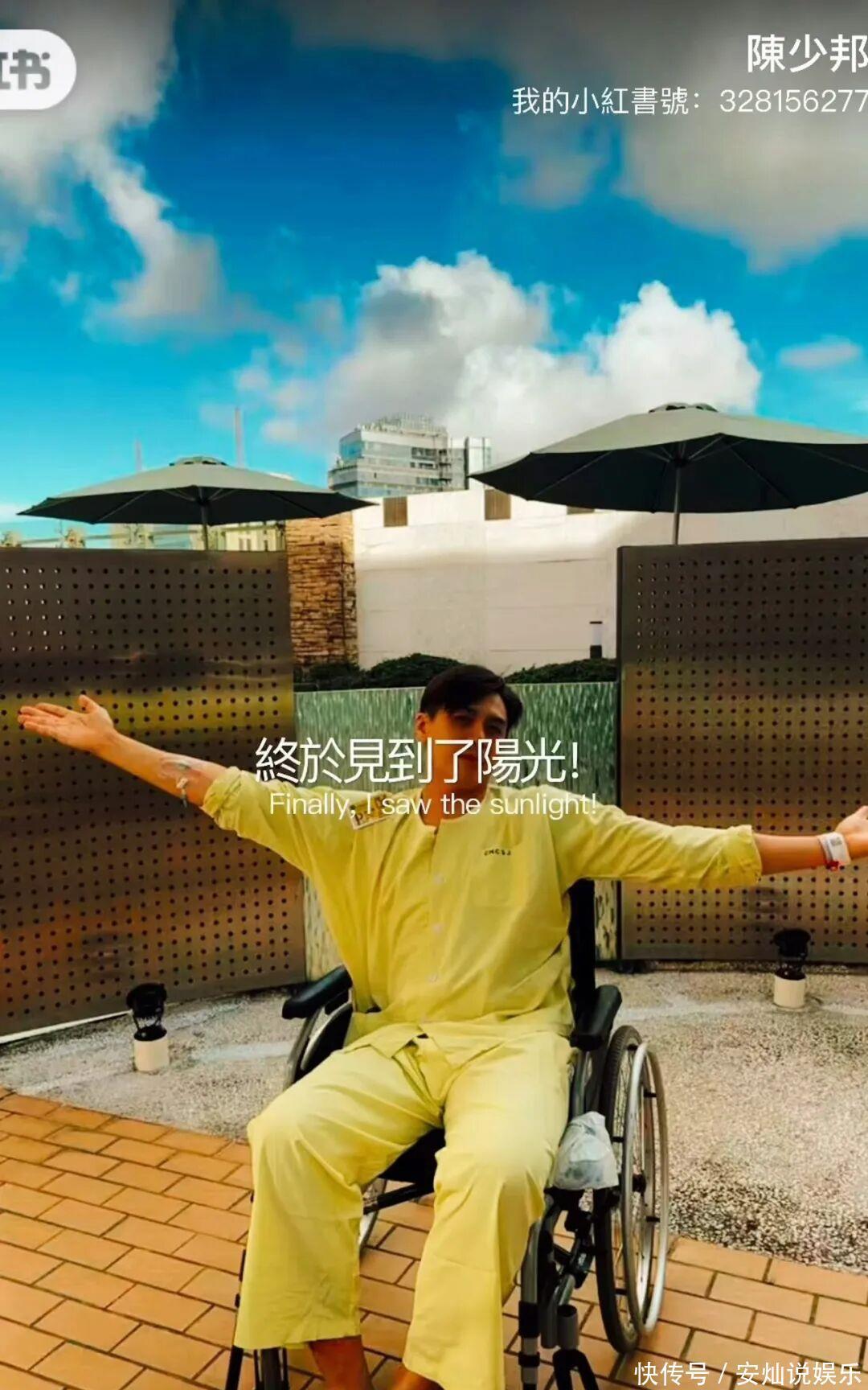 帖文中,他始终不愿意透露自己因什么做手术治疗,但可以从他坐在轮椅上的照片中看到,他的双脚疑似浮肿,而另一张照片中,其女儿也有拿着拐杖,疑似行动不便。